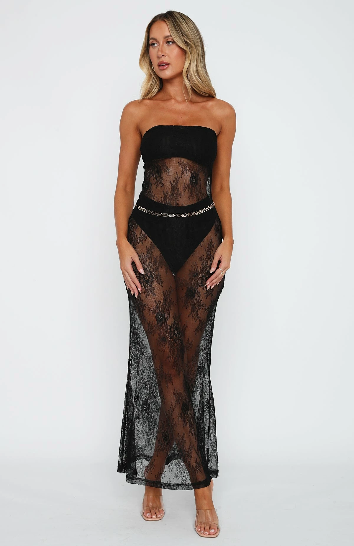The Someone Else Lace Strapless Maxi Dress is fun and flirty. This strapless maxi dress features grip tape and sheer lace fabric. We love this paired with gold accessories and perspex heels for a look that will have all eyes on you!