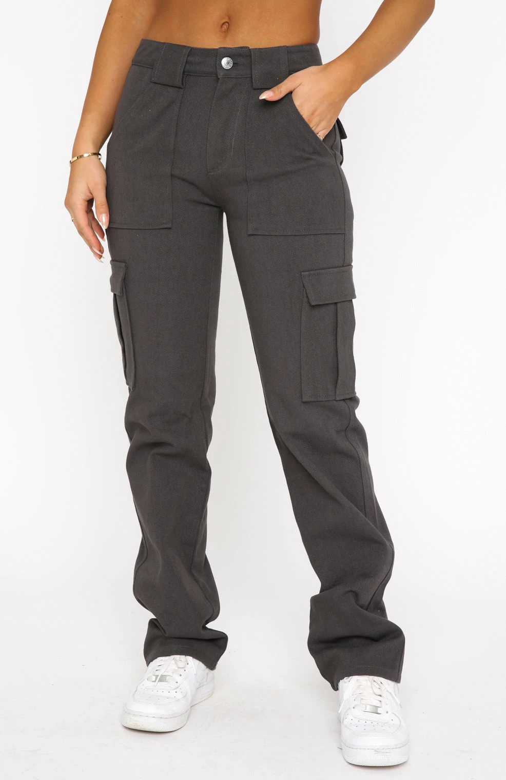 The Someone To You Cargo Pants in Charcoal are this seasons must-have! Featuring a cargo design and a wide leg fit, belt loops, button/zip closure and pocket design on legs. We love this paired with a bustier and sneakers for the ultimate cool girl look!