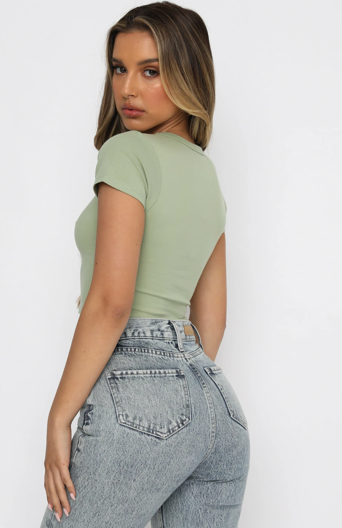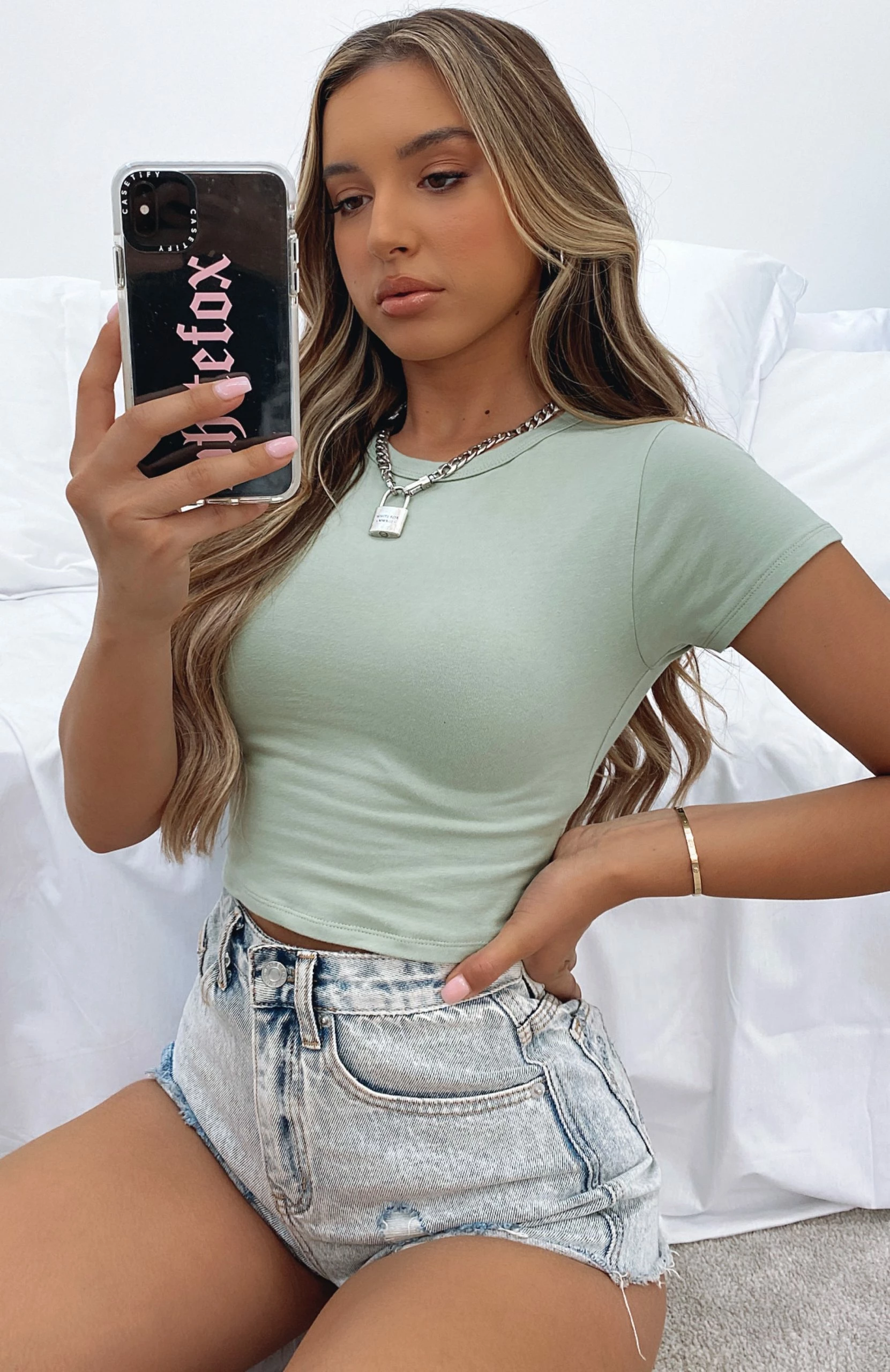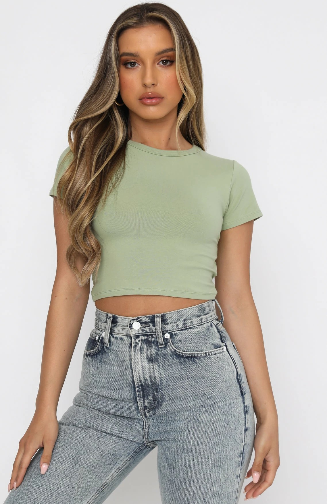 You can never have too many basic crops in your wardrobe, so why not add the Switching Sides Crop in Sage to your collection. This cropped top has a high scooped neckline, shorts sleeves and soft stretch fabric. Complete the look with your favourite jeans and sneakers for a chic everyday look.