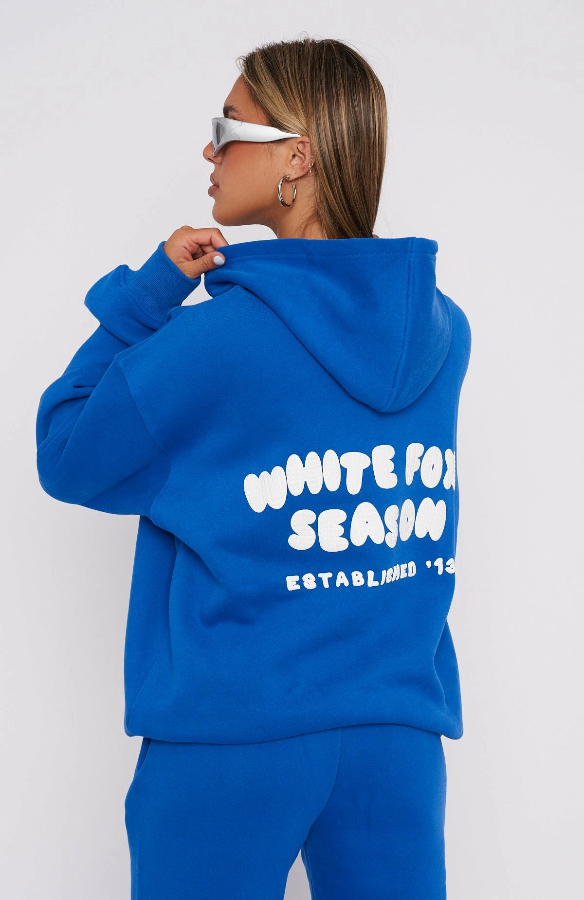 Loungewear is always a mood. The Main Season Oversized hoodie in Electric Blue is an oversized fit and features elasticated ribbed cuffs & hem, hood, soft fleeced fabric for extra comfort and embossed puffer printing centre back and front side. Complete the tracksuit set with The Main Season sweatpants or bike shorts.