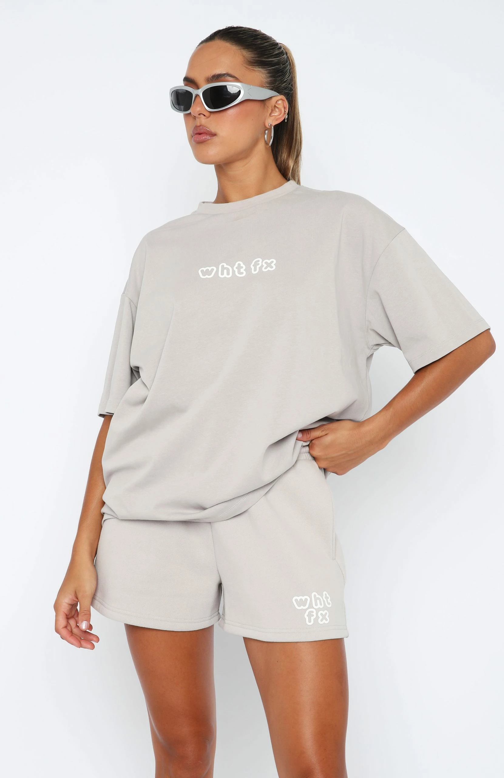 Switch up your stay at home look with the Top Tier Lounge Shorts in Lunar. Featuring a loose relaxed fit with an elasticated high waistband with drawstring, side pockets, soft fleece fabric for extra comfort and puff print logo front side. Pair with either the matching Top Tier Oversized Sweater or the Top Tier Oversized Tee and sneakers for the ultimate off-duty fit!