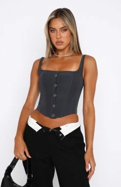 It’s Just Us Long Sleeve Top Charcoal
