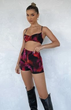 These boots shorts are a MUST have addition to your festival wardrobe this season. The Unavailable Hot Pants in Pink Flame Print feature a high waist, self lined mesh fabric, hot pant style. Complete the set with the Executive Crop and sparkly accessories!