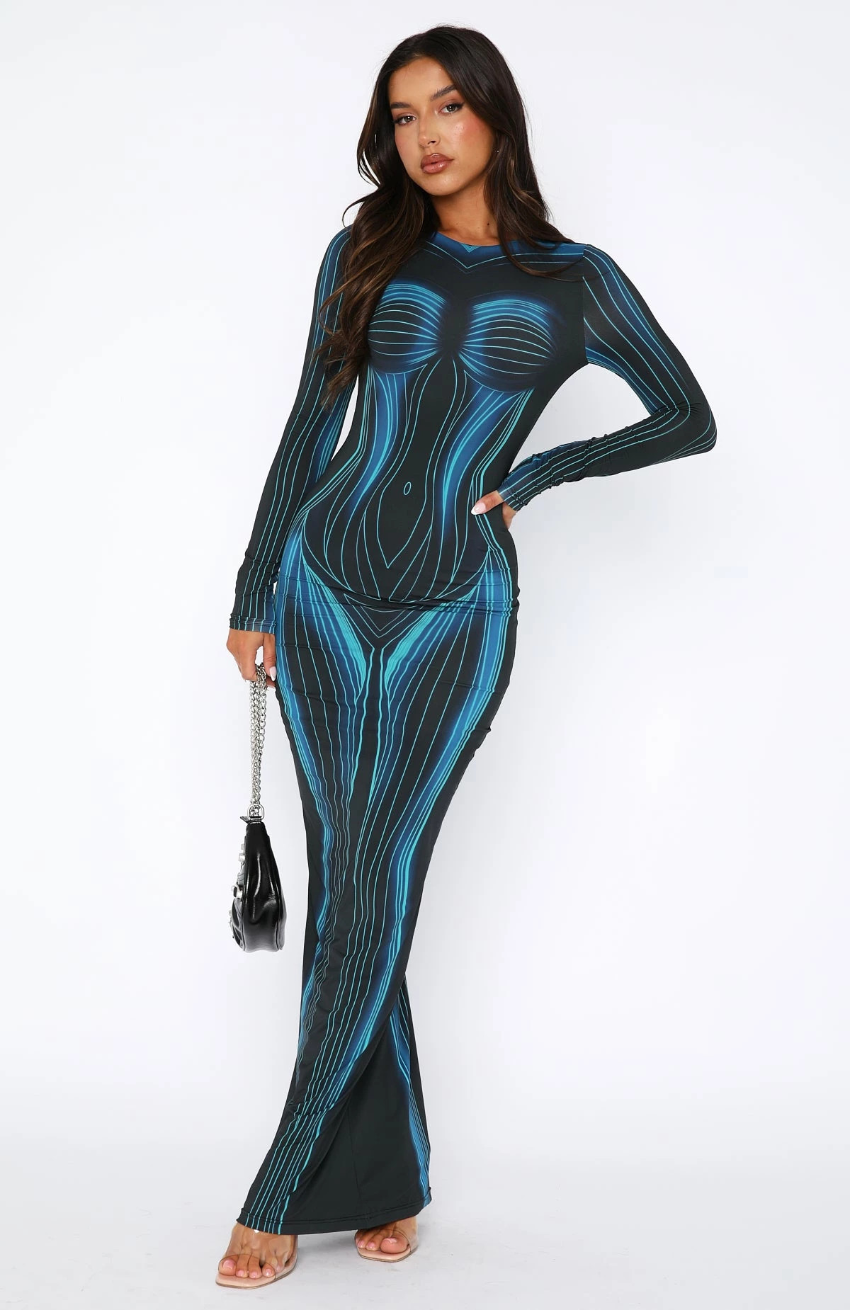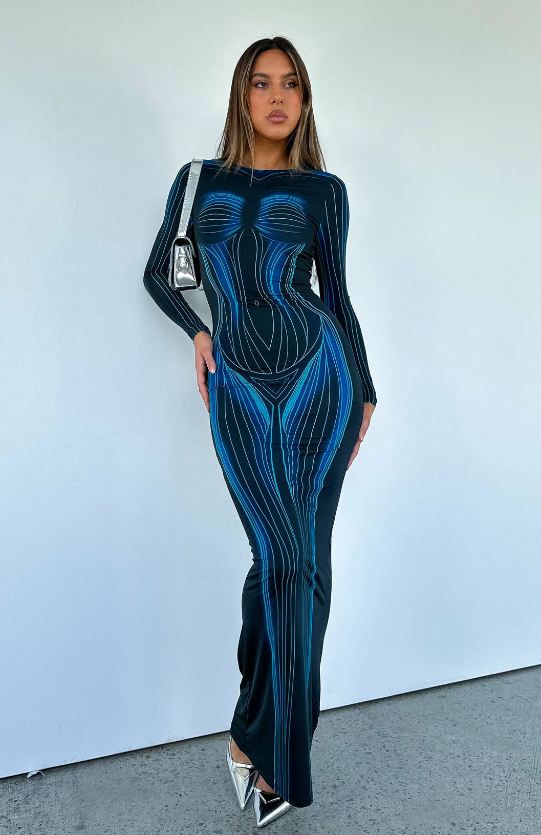 Add a little main character energy to your next night out fit with the Under The Stars Maxi Dress Neptune. Featuring long sleeves, high scooped neckline, maxi length and lined, stretch fabric. Pair with simple accessories and knee-high boots for a dreamy look!