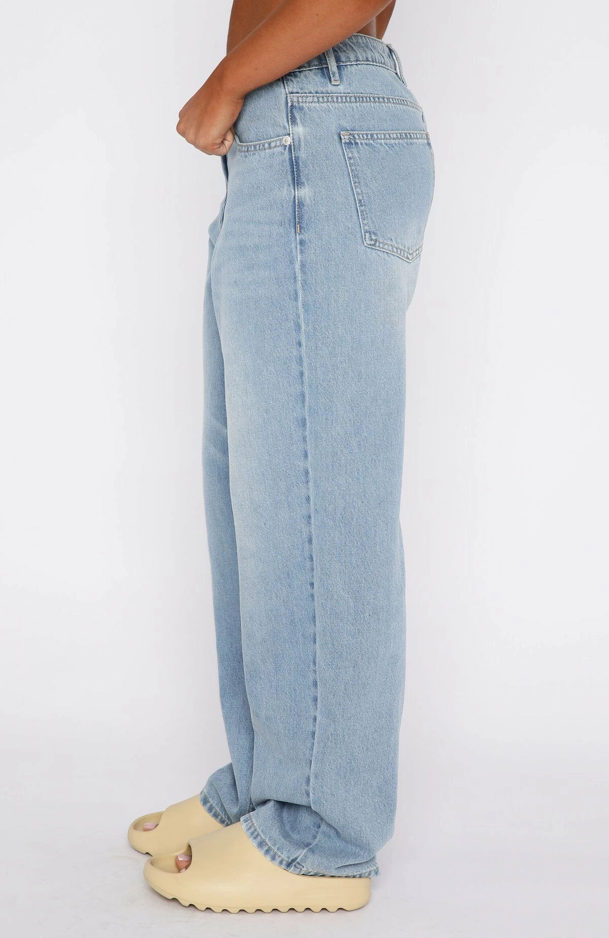 Channel everyday street style in the With You Jeans in Vintage Mid Blue. These low rise, relaxed fit jeans feature wide leg style, silver button closure & zip at front, belt loops and 5 pocket design. We love this paired with a cute crop and sneakers for the perfect weekend look!